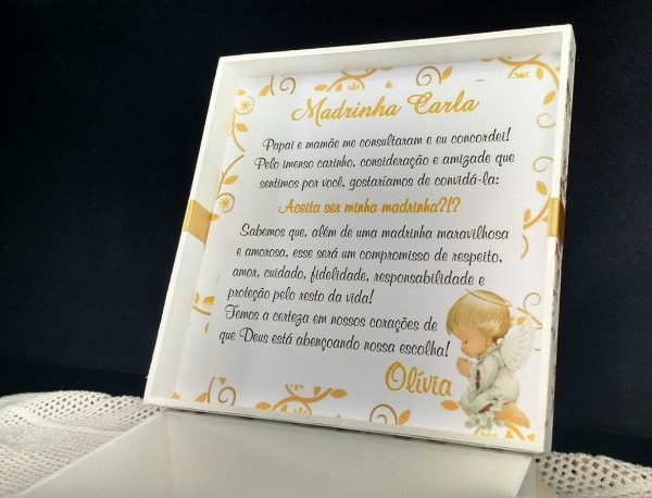 Caixa convite padrinhos de batizado no Elo7 . Compre Caixa convite padrinhos de batizado no Elo7 por R$ 35,00 | Encontre mais produtos de Lembrancinhas de Batizado e Lembrancinhas parcelando em até 12 vezes | Delicada caixinha em mdf decorada para batizado, bem nascido, etc.