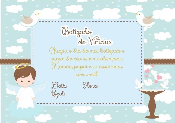 Convite . Compre Convite - Tema Batizado Anjo Menino 1 no Elo7 por R$ 15,00 | Encontre mais produtos de Convites de Aniversário Infantil e Aniversário e Festas parcelando em até 12 vezes | Convite Digital Personalizado.