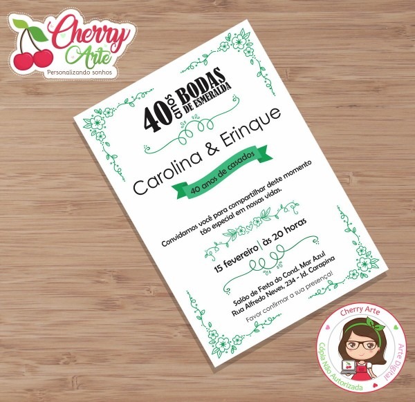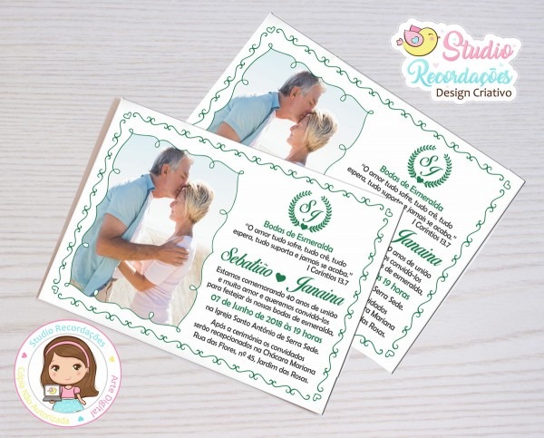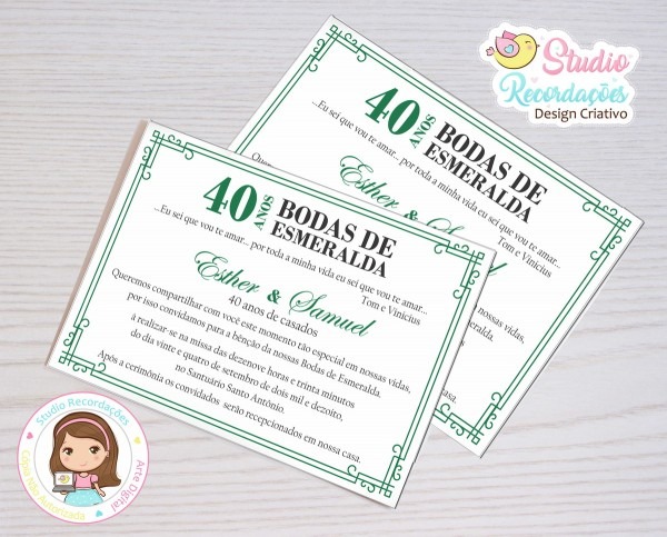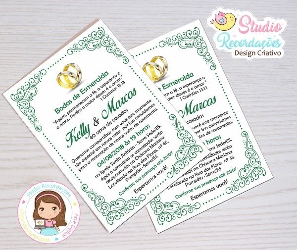 Convite Digital bodas de Esmeralda . Compre Convite Digital bodas de Esmeralda - Santa Lúcia no Elo7 por R$ 22,00 | Encontre mais produtos de Convites de Bodas de Ouro e Convites parcelando em até 12 vezes | Esse produto é uma Arte é Digital (NÃO à IMPRESSO)