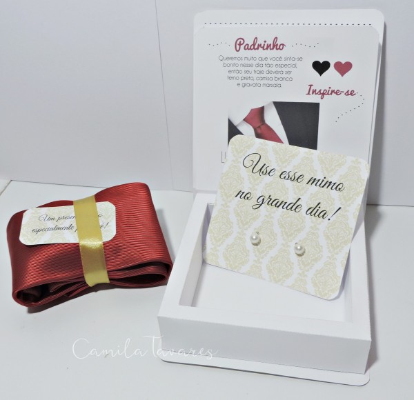 Caixa Convite Padrinhos. Compre Caixa Convite Padrinhos-Gravata e Brinco/Manual no Elo7 por R$ 17,00 | Encontre mais produtos de Convites de Casamento e Casamento parcelando em até 12 vezes | Caixa de Padrinhos - Linda e personalizada!