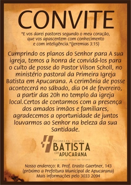 Primeira Igreja Batista de Apucarana: Convite . pibapucarana.blogspot.com
