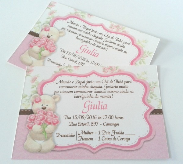 PROMOÃÃO Convite Chá Bebê Ursinha 2 no Elo7 . Compre PROMOÃÃO Convite Chá Bebê Ursinha 2 no Elo7 por R$ 0,49 | Encontre mais produtos de Convites de Chá de Bebê e Convites parcelando em até 12 vezes | Convite para chá de bebê em papel couchê 180g. Padronizado com o nome da criança, com a data e o local.