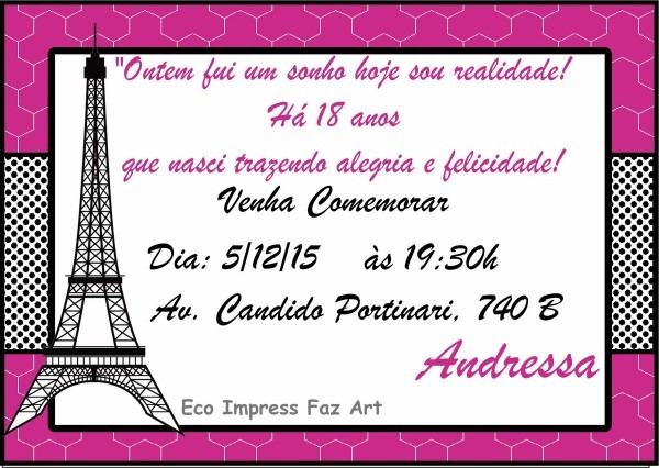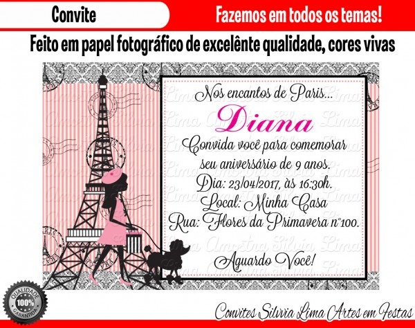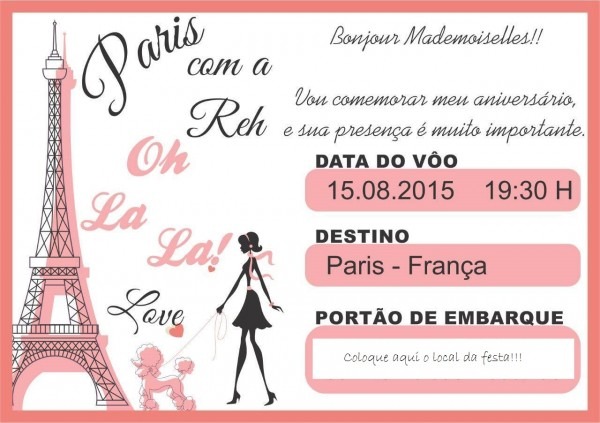 Convite de Aniversário Paris . blog.postnetsantos.com.br