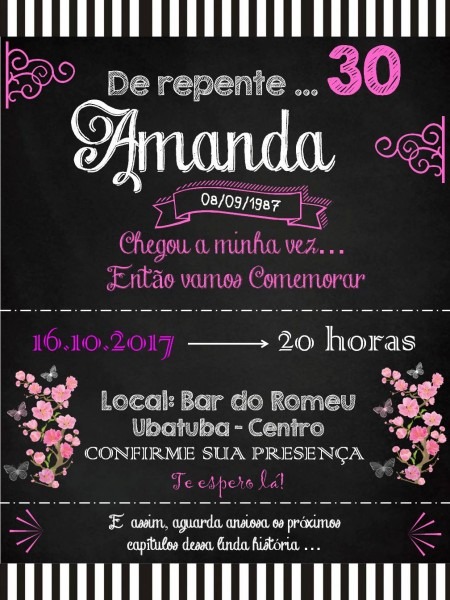 Convite 30 Anos Feminino . Convite 30 Anos Feminino feitas especialmente para você. Mais de 672 Convite 30 Anos Feminino: convite aniversário de 30 anos personalizado, convite para festa de 30 anos, festa 30 anos, convite digital 30 anos, 30 anos www.elo7.com.br