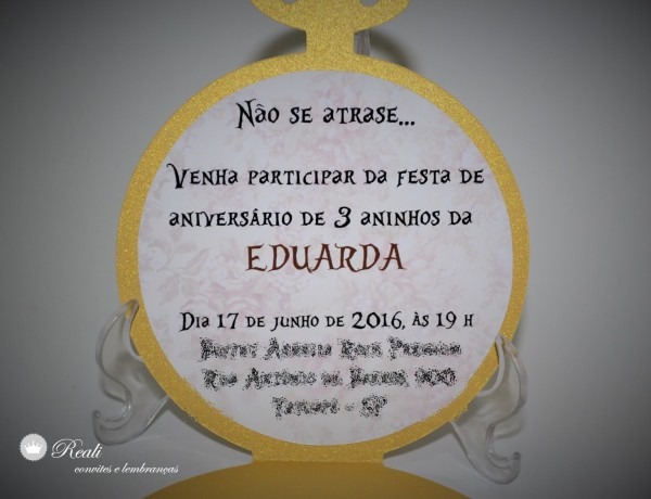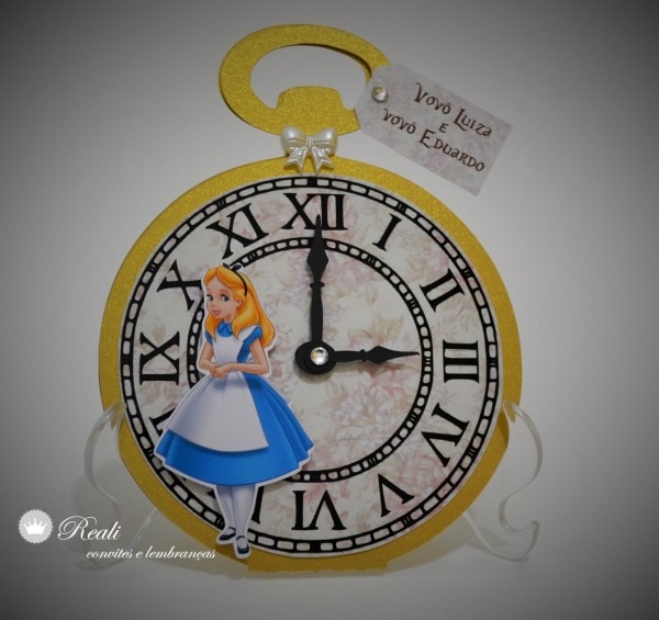 Convite Alice no PaÃs das Maravilhas no Elo7 . Compre Convite Alice no PaÃs das Maravilhas no Elo7 por R$ 2,99 | Encontre mais produtos de Convites de Festa Infantil e Convites parcelando em até 12 vezes | Convite Relógio Alice no PaÃs das Maravilhas, produzido em papel perolizado ouro 180g, papel opaline 180g e fita de cetim.