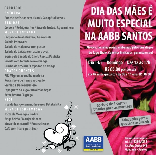 [ESGOTADO] Almoço do Dia das Mães â AABB . aabbsantos.com.br