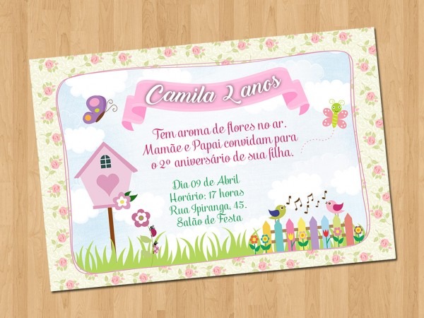 Convites . Compre Convites - Aniversário Jardim no Elo7 por R$ 1,65 | Encontre mais produtos de Convites de Aniversário e Convites parcelando em até 12 vezes | Convites - Aniversário Jardim