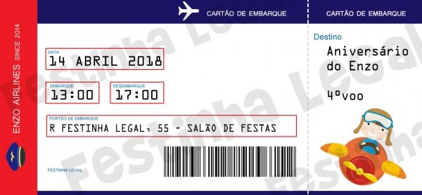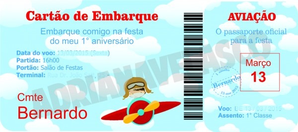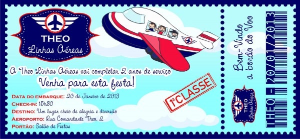 Convite passagem aviao digital no Elo7 . Compre Convite passagem aviao digital no Elo7 por R$ 30,00 | Encontre mais produtos de Convites de Festa Infantil e Convites parcelando em até 12 vezes | Atenção, passageiros, última chamada! Um convite muito fofo: em forma de passagem/ticket!