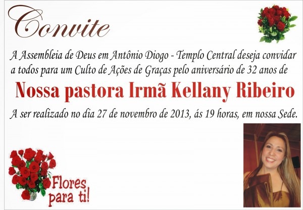 Pastor Hiram Ribeiro dos Santos Filho: ANIVERSÃRIO DE 32 ANOS DE KELLANY RIBEIRO!. prhiramfilho.blogspot.com