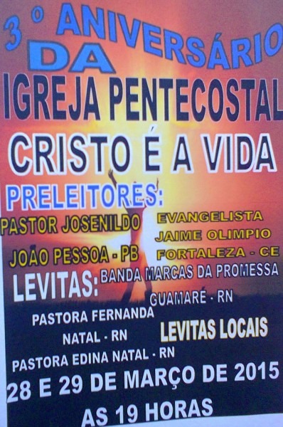 CONVITE! A IGREJA PENTECOSTAL EM GUAMARà CONVIDA A POPULAÃÃA PARA O SEU 3º ANIVERSARIO. . guamarenatela.blogspot.com