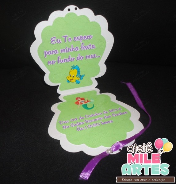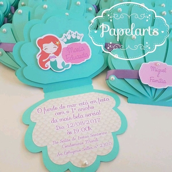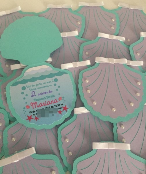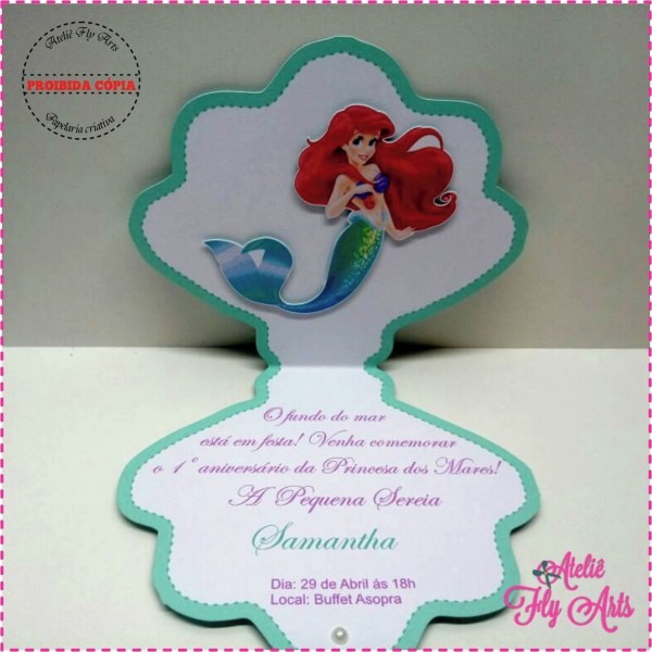 Convite Ariel Concha no Elo7 . Compre Convite Ariel Concha no Elo7 por R$ 3,00 | Encontre mais produtos de Convites de Aniversário e Convites parcelando em até 12 vezes | Convite Concha medindo 10 altura x 11 largura