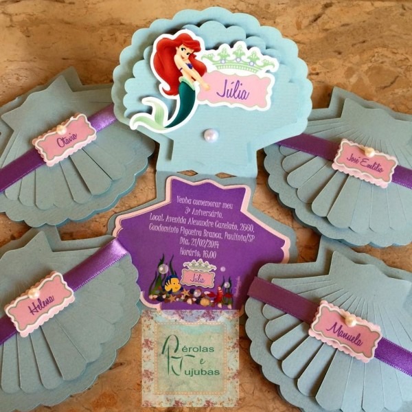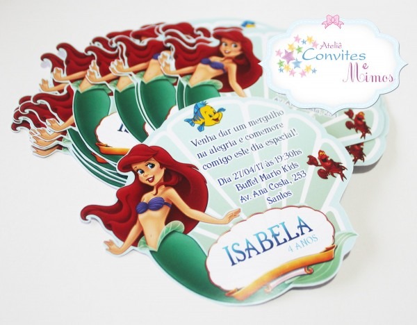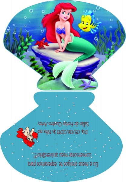Convite Ariel concha no Elo7 . Compre Convite Ariel concha no Elo7 por R$ 2,00 | Encontre mais produtos de Convites de Aniversário Infantil e Aniversário e Festas parcelando em até 12 vezes | Convite Ariel forma de concha