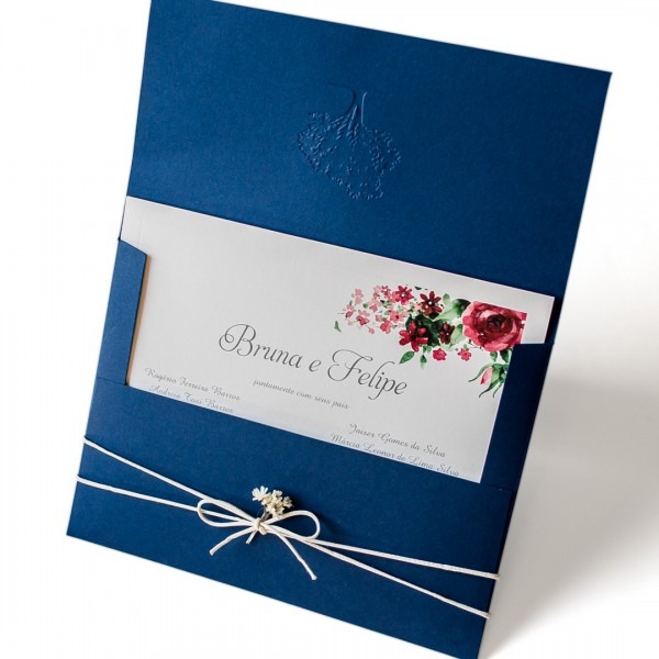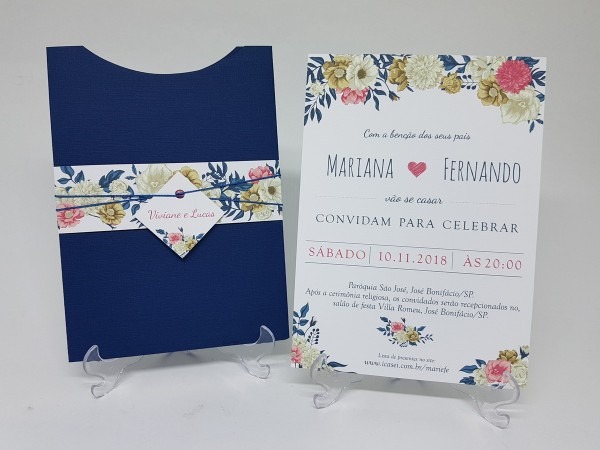 Convite para casamento azul marinho floral no Elo7 . Compre Convite para casamento azul marinho floral no Elo7 por R$ 6,00 com frete grátis | Encontre mais produtos de Convites de Casamento e Casamento parcelando em até 12 vezes | Envelope em papel Telado180g (formato 15x20cm).