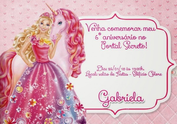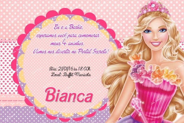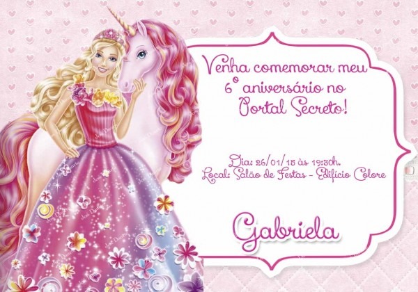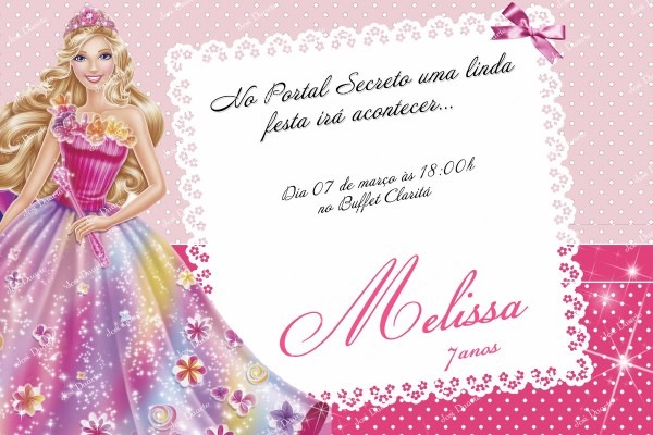 Convite Barbie Portal Secreto no Elo7 . Compre Convite Barbie Portal Secreto no Elo7 por R$ 0,99 | Encontre mais produtos de Convites de Aniversário Infantil e Aniversário e Festas parcelando em até 12 vezes | -Convite personalizado impresso em papel fotográfico 230g