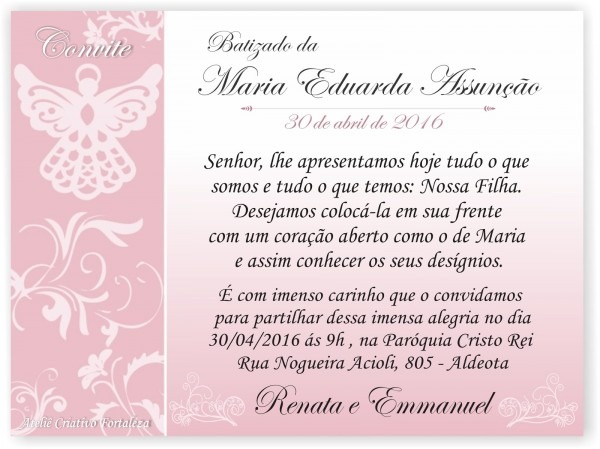 Convite Padrinhos Apresentação Batizado Arquivo Digital . Compre-o no Mercado Livre por R$ 19,90 - Compre em 12x. Encontre mais produtos de Brinquedos e Hobbies, Ar Livre, Malabares e Festas, Festas , Convites. produto.mercadolivre.com.br
