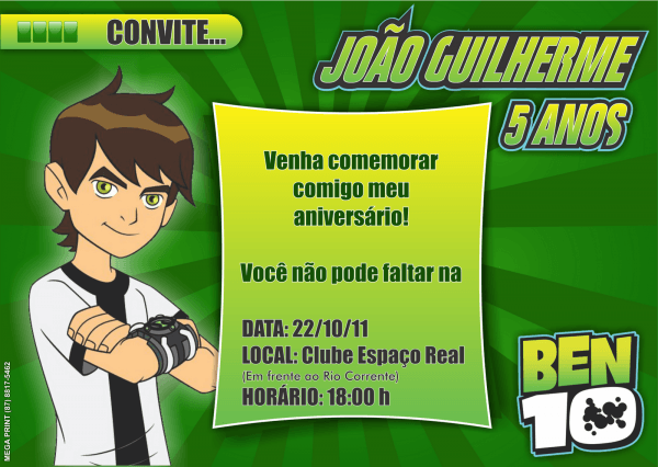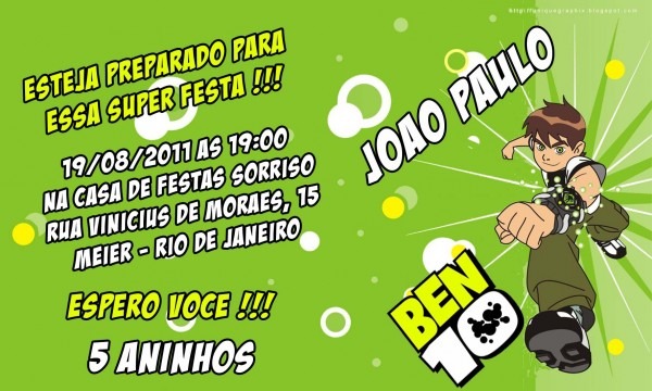 Convite Aniversário Ben 10 . heraldojr.blogspot.com