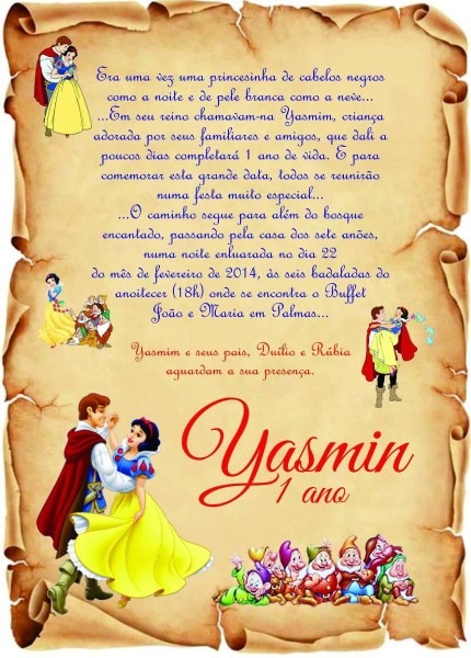 Convite Branca de neve no Elo7 . Compre Convite Branca de neve no Elo7 por R$ 2,40 | Encontre mais produtos de Convites de Aniversário e Convites parcelando em até 12 vezes | Lindos Convites personalizados.