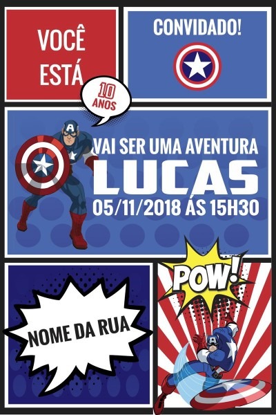 Convite Capitão América . Compre Convite Capitão América -Arte no Elo7 por R$ 25,00 | Encontre mais produtos de Convites de Aniversário Infantil e Aniversário e Festas parcelando em até 12 vezes | Arte digital de convite para imprimir ou enviar por redes sociais