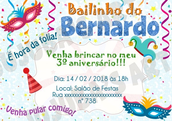 Arte Digital Convite Bailinho de Carnaval no Elo7 . Compre Arte Digital Convite Bailinho de Carnaval no Elo7 por R$ 9,60 | Encontre mais produtos de Convites de Aniversário Infantil e Aniversário e Festas parcelando em até 12 vezes | POR FAVOR, CLIQUE EM COMPRAR APENAS SE FOR REALMENTE EFETUAR O PAGAMENTO!