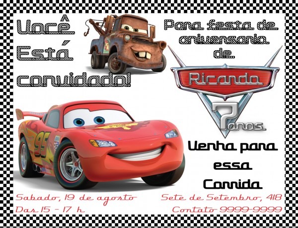 Carros Convite Digital Disney Mcqueen no Elo7 . Compre Carros Convite Digital Disney Mcqueen no Elo7 por R$ 32,00 | Encontre mais produtos de Convites de Aniversário Infantil e Aniversário e Festas parcelando em até 12 vezes | Lindo CONVITE, para você realizar o sonho do seu maior Tesouro, seu filho!