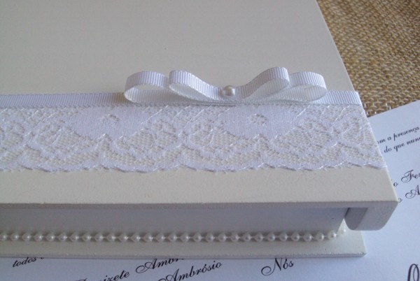 CAIXA CONVITE DE CASAMENTO "RENDADA" no Elo7 . Compre CAIXA CONVITE DE CASAMENTO "RENDADA" no Elo7 por R$ 28,10 | Encontre mais produtos de Convites de Casamento e Casamento parcelando em até 12 vezes | LINDA CAIXA EM MDF RECORTADA A LASER E DECORADA COM PINTURA BRANCA, RENDA, FITA DE GORGURÃO E PÃROLAS, TODOS FAZENDO UM COMPOSà SUPER..., 5452F9 www.elo7.com.br