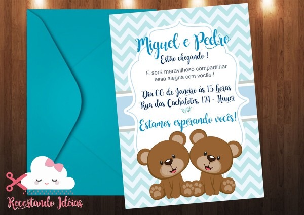 50 Convites Chá Gêmeos Personalizados 10x15cm . Compre-o no Mercado Livre por R$ 25,00 - Compre em 12x. Encontre mais produtos de Brinquedos e Hobbies, Ar Livre, Malabares e Festas, Festas , Convites. produto.mercadolivre.com.br