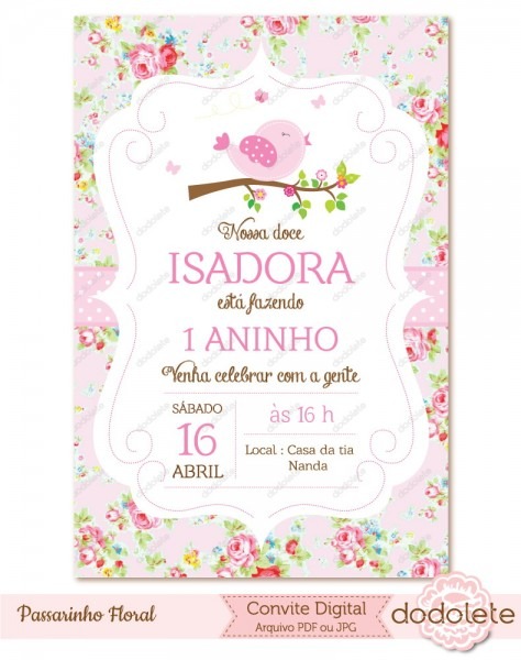 Convite Digital Passarinho Floral no Elo7 . Compre Convite Digital Passarinho Floral no Elo7 por R$ 37,80 | Encontre mais produtos de Convites de Chá de Fraldas e Convites parcelando em até 12 vezes | Lindo Convite Digital