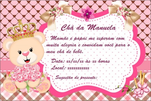 Convite chá de bebê ursinha princesa no Elo7 . Compre Convite chá de bebê ursinha princesa no Elo7 por R$ 0,60 com frete grátis | Encontre mais produtos de Convites de Aniversário Infantil e Aniversário e Festas parcelando em até 12 vezes | Convite Tamanho 9cmx6cm
