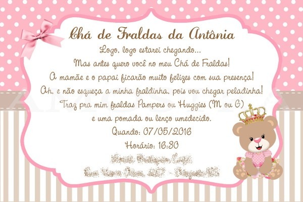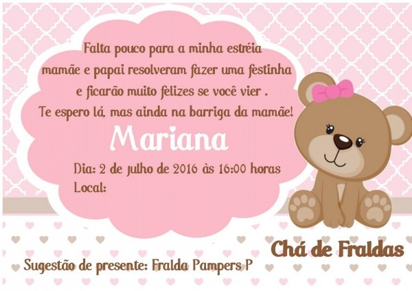 Convite Chá de Fralda. Compre Convite Chá de Fralda- Ursinha no Elo7 por R$ 15,00 | Encontre mais produtos de Chá de Bebê e Bebê parcelando em até 12 vezes | Convite Digital Personalizado.