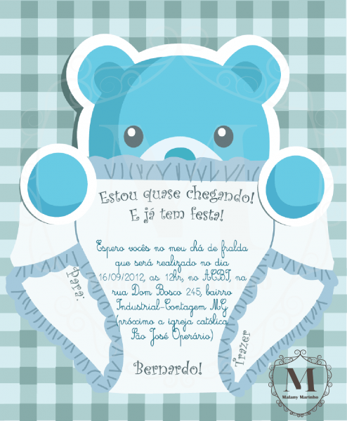 Convite ursinho chá de fraldas no Elo7 . Compre Convite ursinho chá de fraldas no Elo7 por R$ 0,50 | Encontre mais produtos de Convites de Chá de Bebê e Convites parcelando em até 12 vezes | Convite para chá de bebê em papel 180g.