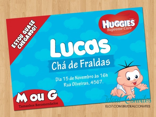 Convite . Compre Convite - Chá de Fraldas Huggies Supreme no Elo7 por R$ 1,65 | Encontre mais produtos de Convites de Chá de Fraldas e Convites parcelando em até 12 vezes | Convite Personalizado - Chá de Fraldas Huggies Supreme Care