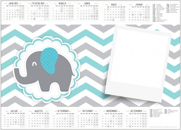 Convite Calendário 2017 Elefantinho Chevron Cinza e Azul Turquesa . Convite Calendário 2017 Elefantinho Chevron Cinza e Azul Turquesa totalmente grátis, pronto para personalizar e imprimir em casa. fazendoanossafesta.com.br