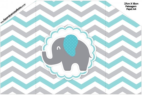 Envelope Convite Elefantinho Chevron Cinza e Azul Turquesa . Envelope Convite Elefantinho Chevron Cinza e Azul Turquesa totalmente grátis, pronto para personalizar e imprimir em casa. fazendoanossafesta.com.br