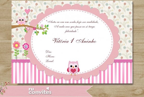 Convites gratuitos para festa infantil com tema Corujinha . www.dicaspramamae.com