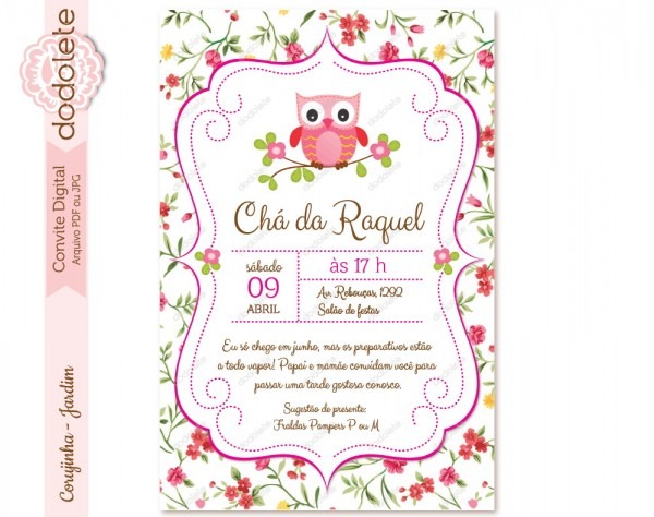 Convite Digital Corujinha . Compre Convite Digital Corujinha - Jardim no Elo7 por R$ 35,00 | Encontre mais produtos de Convites de Chá de Fraldas e Convites parcelando em até 12 vezes | Lindo Convite Digital