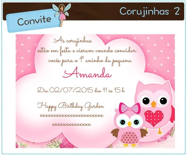 Convite Corujinha . Compre Convite Corujinha | digital no Elo7 por R$ 30,00 | Encontre mais produtos de Convites de Aniversário e Convites parcelando em até 12 vezes | Produto 100% digital