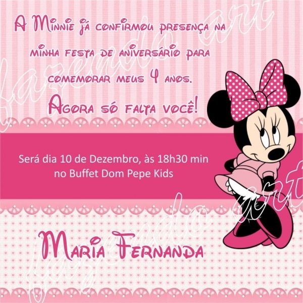 Arte Digital Convite Minnie Rosa no Elo7 . Compre Arte Digital Convite Minnie Rosa no Elo7 por R$ 17,00 | Encontre mais produtos de Convites de Aniversário Infantil e Infantil parcelando em até 12 vezes | Arte Digital Convite Minie.