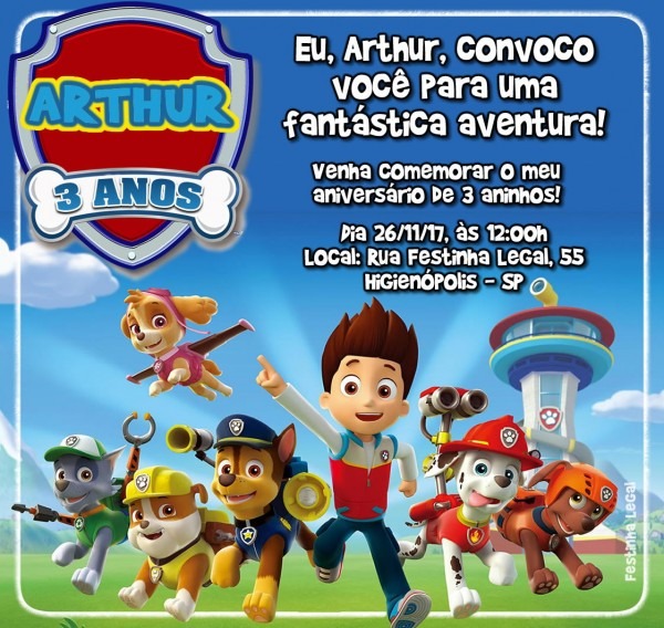 Convite Patrulha Canina Digital Whatsapp no Elo7 . Compre Convite Patrulha Canina Digital Whatsapp no Elo7 por R$ 20,00 | Encontre mais produtos de Convites de Festa Infantil e Convites parcelando em até 12 vezes | Esse convite é apenas digital! Você receberá somente a arte por e-mail.