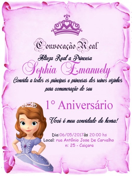 Convite pergaminho princesa sophia no Elo7 . Compre Convite pergaminho princesa sophia no Elo7 por R$ 1,20 | Encontre mais produtos de Convites de Aniversário Infantil e Aniversário e Festas parcelando em até 12 vezes | Convite Personalizado pergaminho