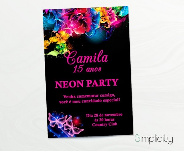 Convite 15 anos neon no Elo7 . Compre Convite 15 anos neon no Elo7 por R$ 3,20 | Encontre mais produtos de Convites de Aniversário e Convites parcelando em até 12 vezes | Convite tamanho 15 x 10 cm
