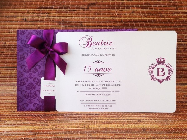 Convite 15 Anos . Compre Convite 15 Anos - Roxo no Elo7 por R$ 3,30 | Encontre mais produtos de Convites de 15 Anos e Convites parcelando em até 12 vezes | - Convite 15 Anos -