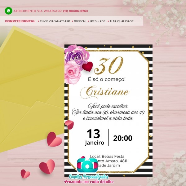 Convite Digital 30 Anos Mulher. Convite Digital 30 Anos Mulher para enviar por Whatsapp e Facebook no formato JPEG e PDF, onde você recebe a arte em alta resolução para imprimir na.... convitesdeaniversario.agenciadfdesign.com.br