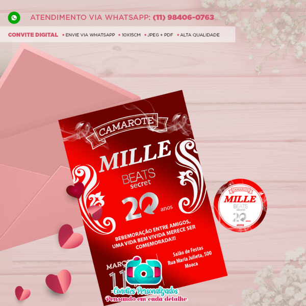 Convite Digital Aniversário 20 anos no Elo7 . Compre Convite Digital Aniversário 20 anos no Elo7 por R$ 22,00 | Encontre mais produtos de Convites de Aniversário e Convites parcelando em até 12 vezes | Produto TOTALMENTE DIGITAL, nada será entregue impresso.