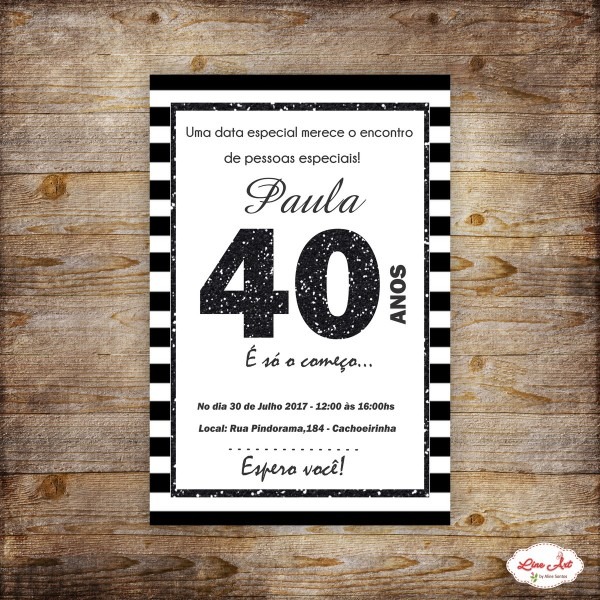 CONVITE DIGITAL 40 ANOS no Elo7 . Compre CONVITE DIGITAL 40 ANOS no Elo7 por R$ 28,05 | Encontre mais produtos de Convites de Festa Infantil e Convites parcelando em até 12 vezes | CONVITE ANIVERSÃRIO 40 ANOS - ARTE DIGITAL