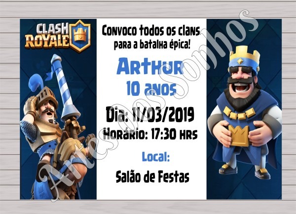 Convite Digital Aniversário Clash Royale Em 3h! . Compre-o no Mercado Livre por R$ 14,99 - Compre em 12x. Encontre mais produtos de Brinquedos e Hobbies, Ar Livre, Malabares e Festas, Festas , Convites, Aniversário Infantil. produto.mercadolivre.com.br