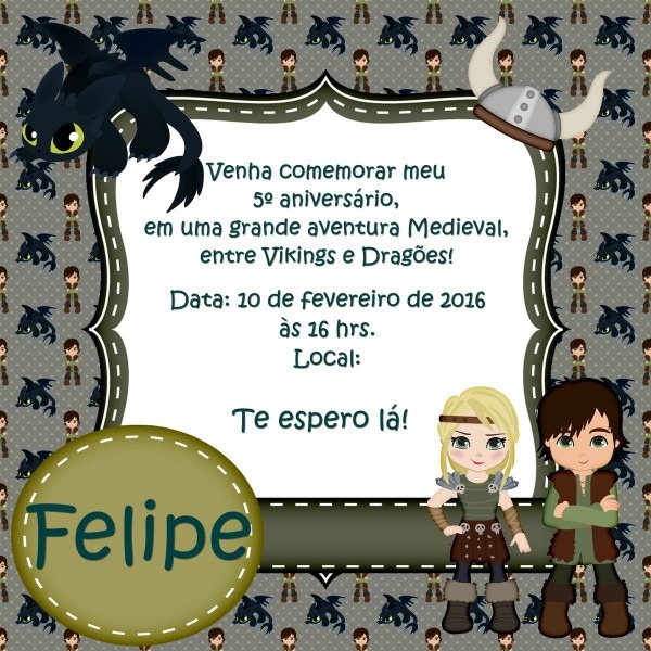 Convite Como treinar o seu Dragão no Elo7 . Compre Convite Como treinar o seu Dragão no Elo7 por R$ 4,99 | Encontre mais produtos de Convites de Festa Infantil e Convites parcelando em até 12 vezes | Convite personalizado em scrap.