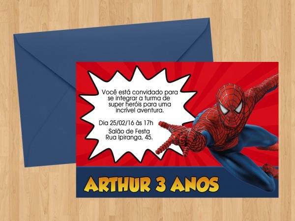 Convite Aniversario Digital Homem Aranha . Compre-o no Mercado Livre por R$ 5,00 - Compre em 12 parcelas. Encontre mais produtos de Mais Categorias, Outros. produto.mercadolivre.com.br