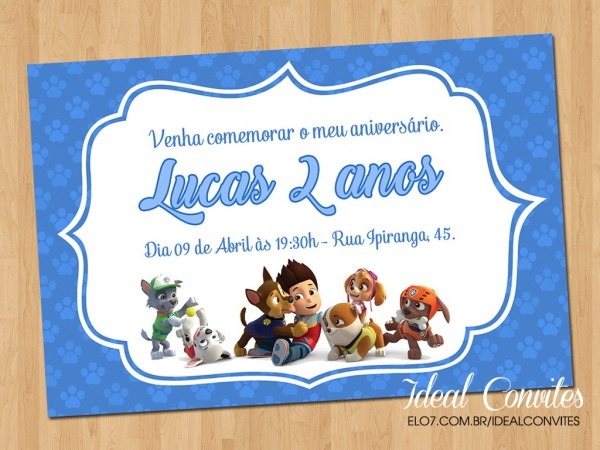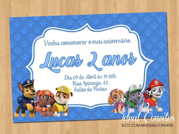 Convite . Compre Convite - Tema Patrulha Canina no Elo7 por R$ 1,65 | Encontre mais produtos de Convites de Aniversário e Convites parcelando em até 12 vezes | Convites Personalizados - Tema Patrulha Canina