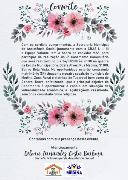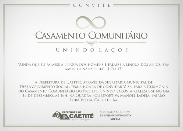 Você é nosso convidado especial para o Casamento Comunitário Unindo Laços â Prefeitura Municipal de Caetité. www.caetite.ba.gov.br