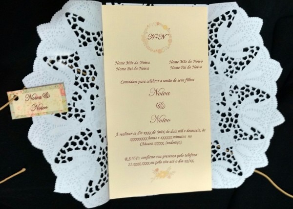Convite De Casamento Doilie 28cm . Compre Convite De Casamento Doilie 28cm -120grs no Elo7 por R$ 6,67 | Encontre mais produtos de Convites de Casamento e Casamento parcelando em até 12 vezes | Convite De Casamento Doilie 28cm Papel Vergê 120grs